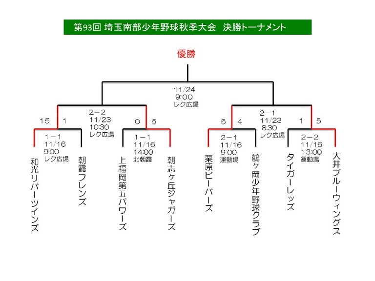| 上福岡第五パワーズ | 2 | 0 | 0 | 0 | 3 | 計5 |