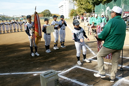 準優勝の賞状が 朝志ヶ丘ジャガーズに贈られました。 |