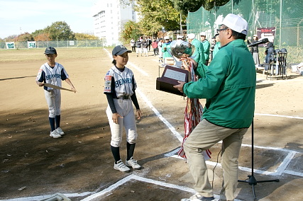 準優勝カップが 朝志ヶ丘ジャガーズに手渡されました。 |